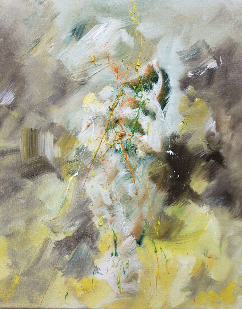 Und inzwischen haben wir April, und in meinem Atelier entstand das Bild „Aprilgedanken“.