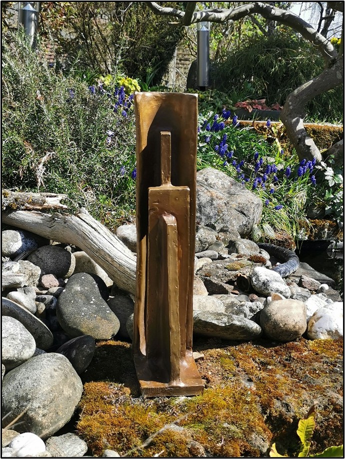 Und er schrieb mir : Und was erkannte meine Frau spontan auf den ersten Blick bei der „Enthüllung“des Geburtstagsgeschenks? Sie sieht ein Paar, eng und fest verbunden und vertraut beieinanderstehen. Er beschützt sie. Für uns beide eine wunderbare zusätzliche Aussage! Der starke Wille wird uns weiterhin zuverlässig zusammenhalten!